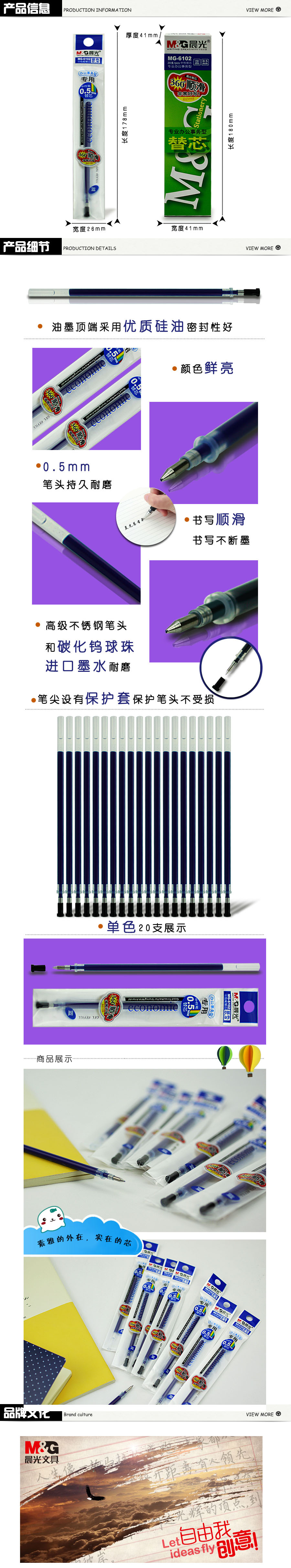 品名:晨光(M&G) 中性笔替芯 MG-6102 0.5mm 20支/盒 蓝色