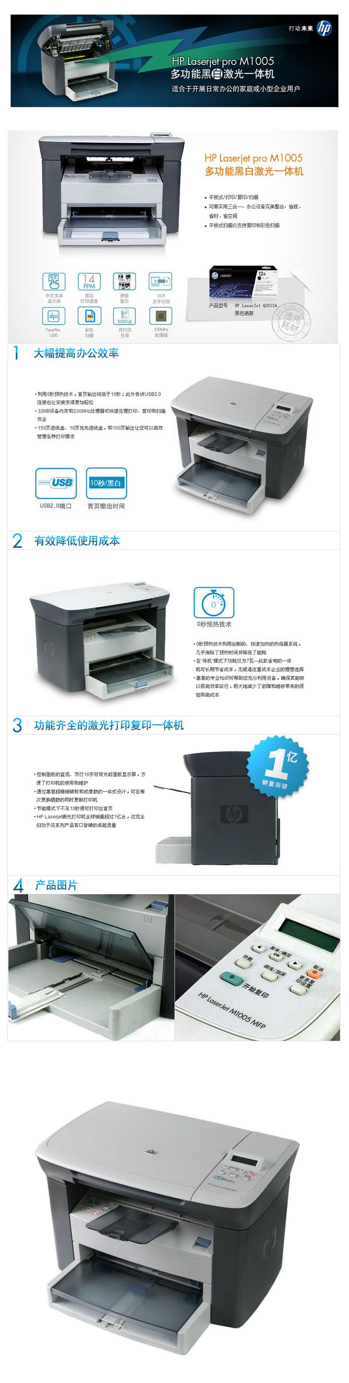 品名:惠普(HP) 黑白激光多功能一体机 M1005 打印/复印/扫描 A4 鼓粉一体