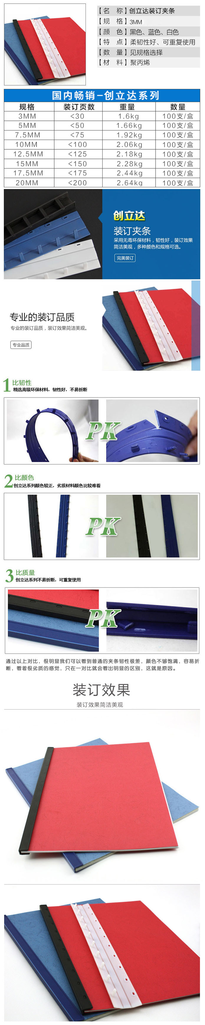 品名:装订夹条 3mm 装订页数30页 50支/盒 蓝色