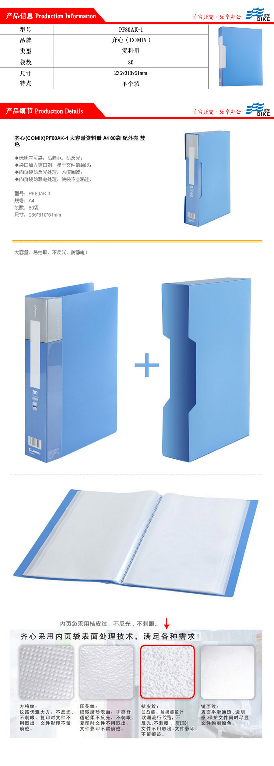 品名:齐心(Comix) 大容量资料册 PF80AK-1 A4 80页