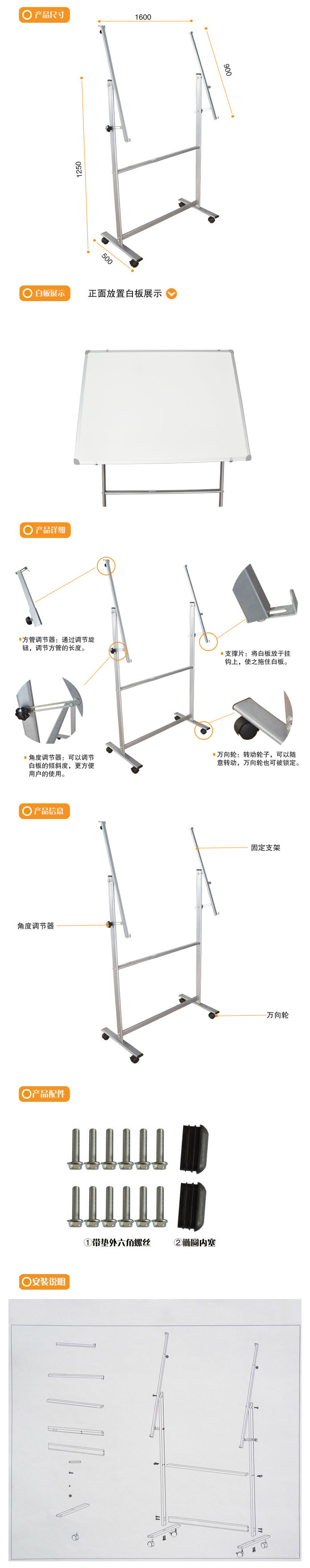 品名:太阳岛 加厚型 圆杆白板架 可调式范围(120*80mm-200*100mm) 120*200cm