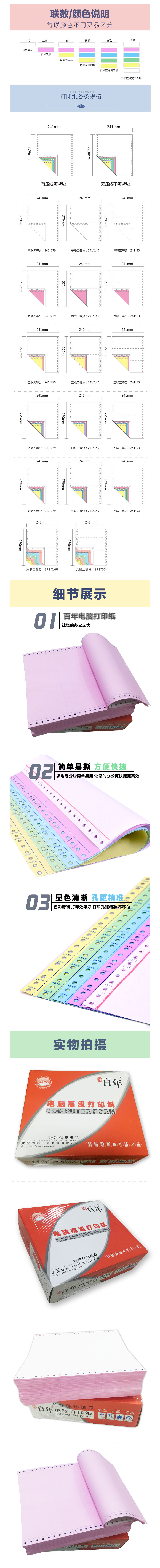 品名:红百年 打印纸 四联一等分 381*280mm 1000张/包