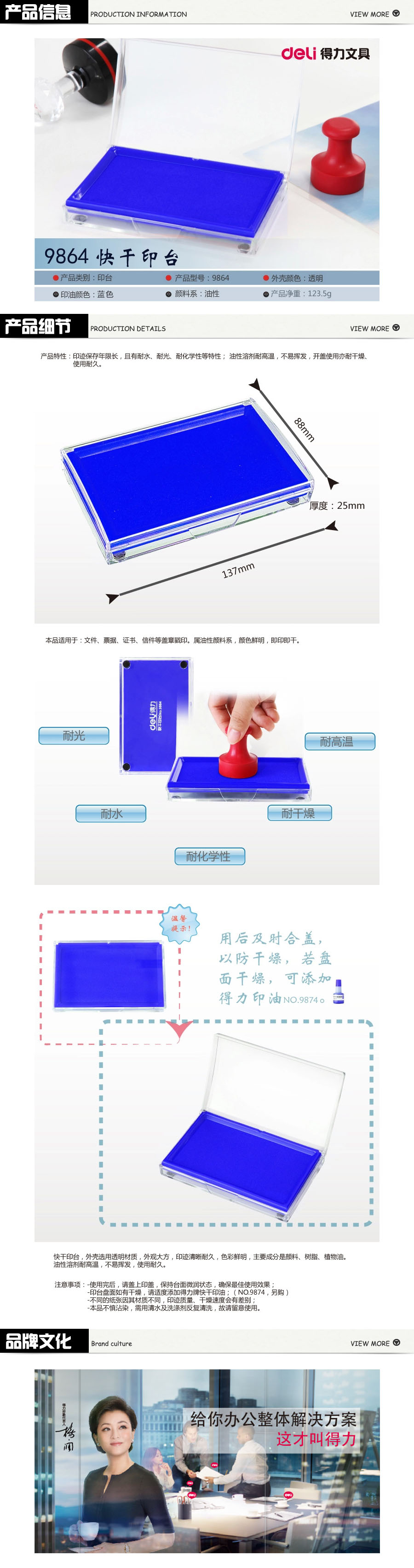 品名:得力(deli) 方形透明外壳快干印台 9864 蓝色