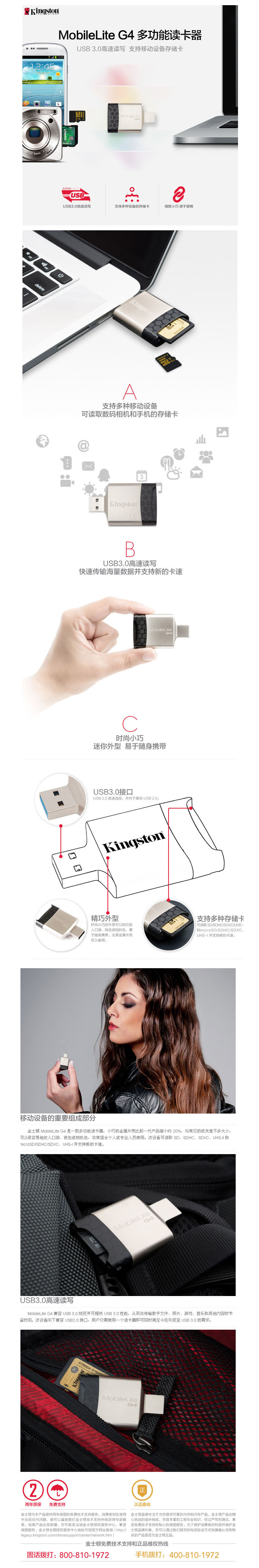 品名:金士顿(Kingston) 读卡器 (FCR-MLG4) USB 3.0 MobileLite G4 多功能