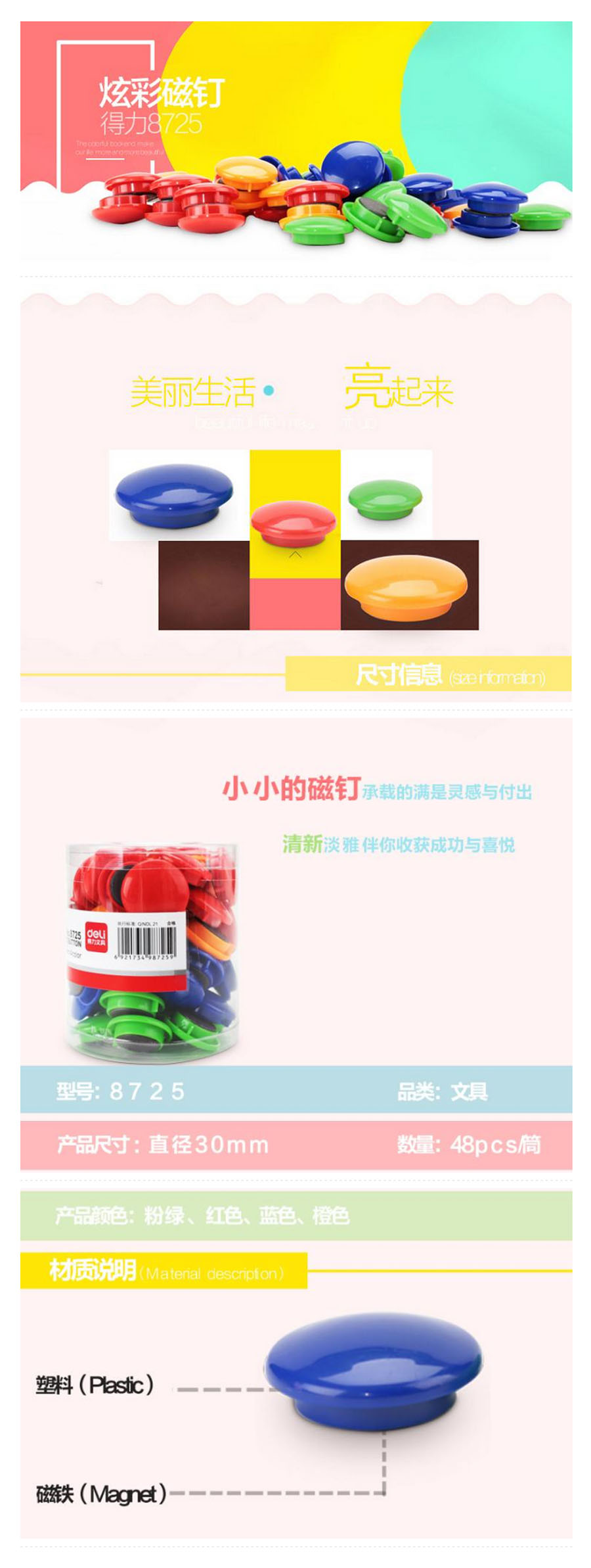 品名:得力(deli) 白板磁钉 8725 φ30mm 48粒/筒