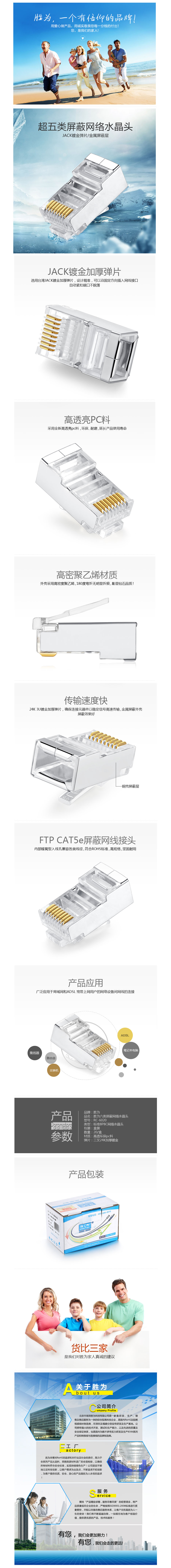 品名:胜为(shengwei) 水晶头 RC-6020 20个/盒 FTP6类 RJ45网线水晶头 铜壳