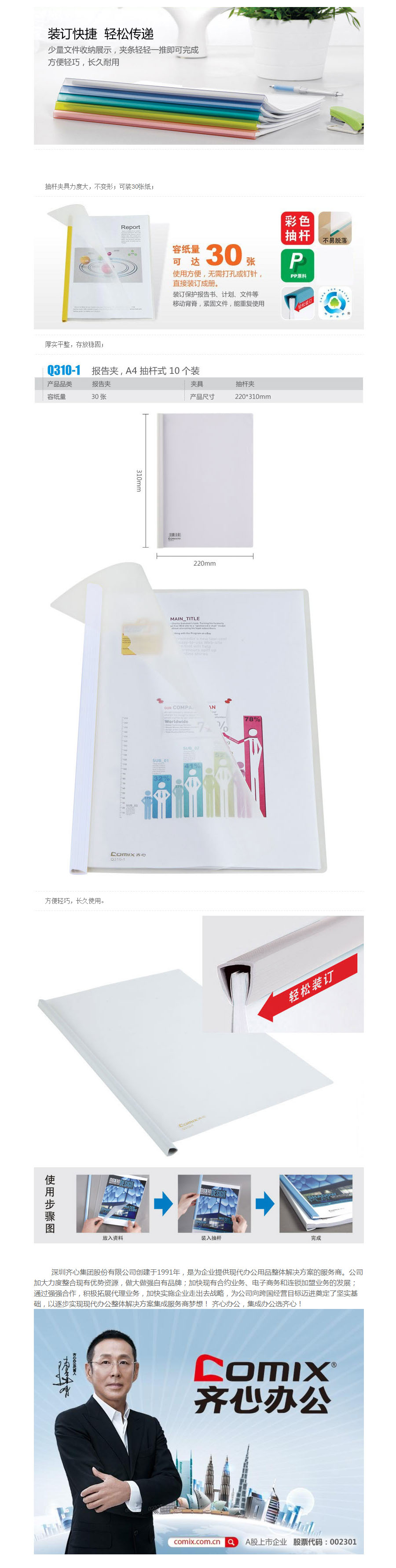 品名:齐心(COMIX) 抽杆夹 Q310-1 A4 10个装 白色