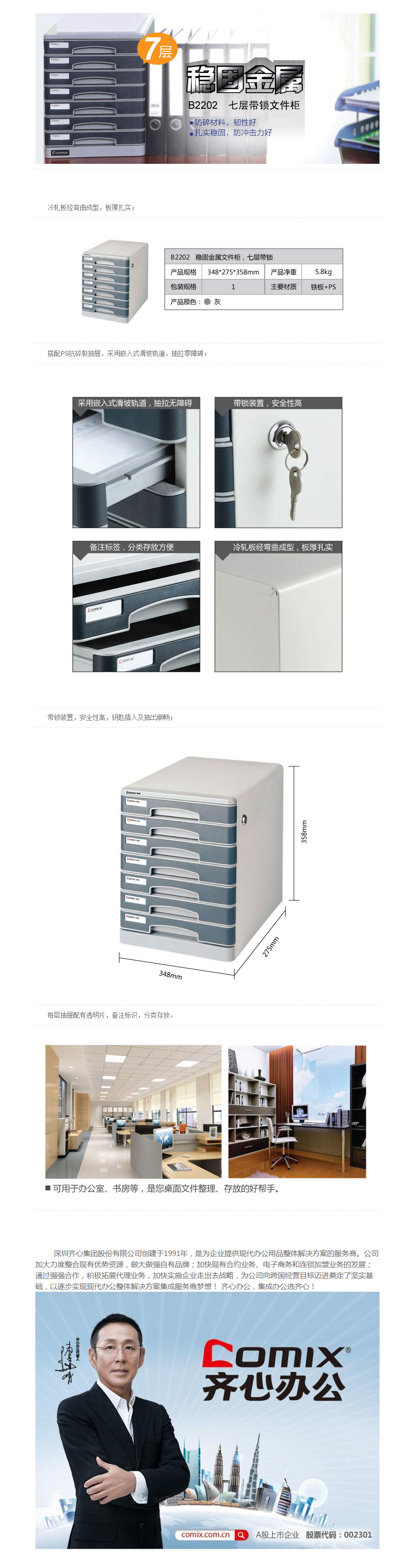 品名:齐心(COMIX) 稳固金属文件柜 B2202 七层带锁
