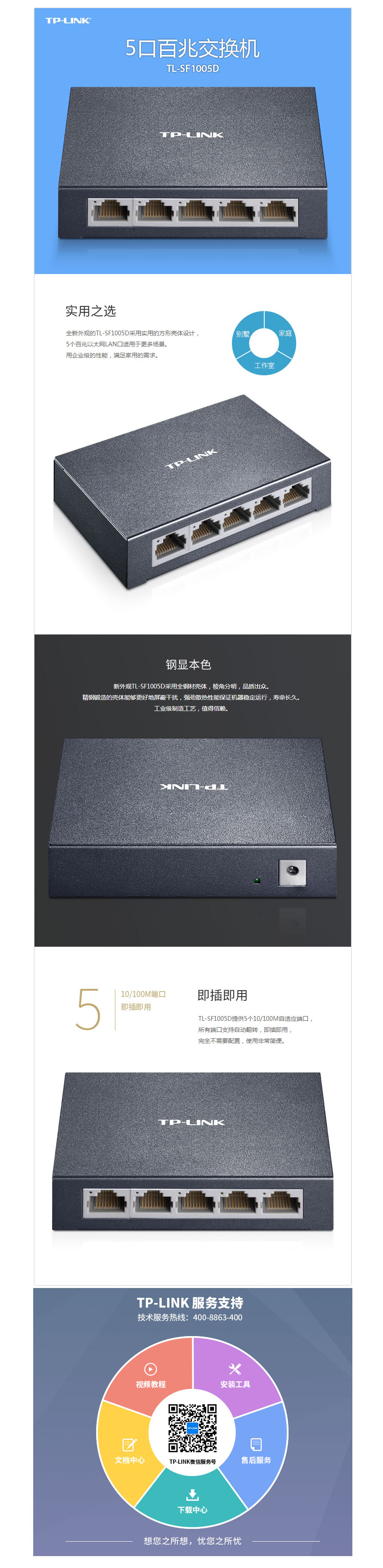 品名:TP-LINK 5口百兆交换机 TL-SF1005D