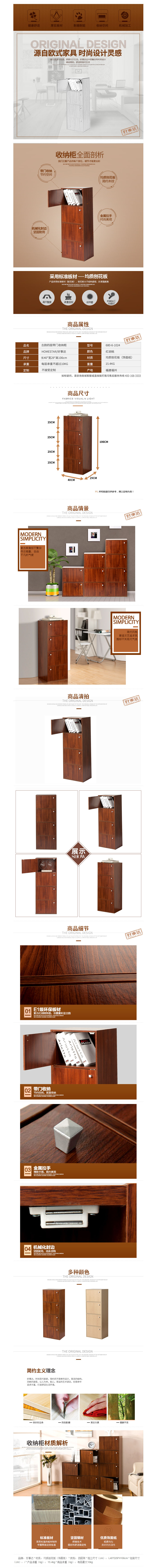 品名:好事达 古韵四层带门收纳柜子 1024 红胡桃