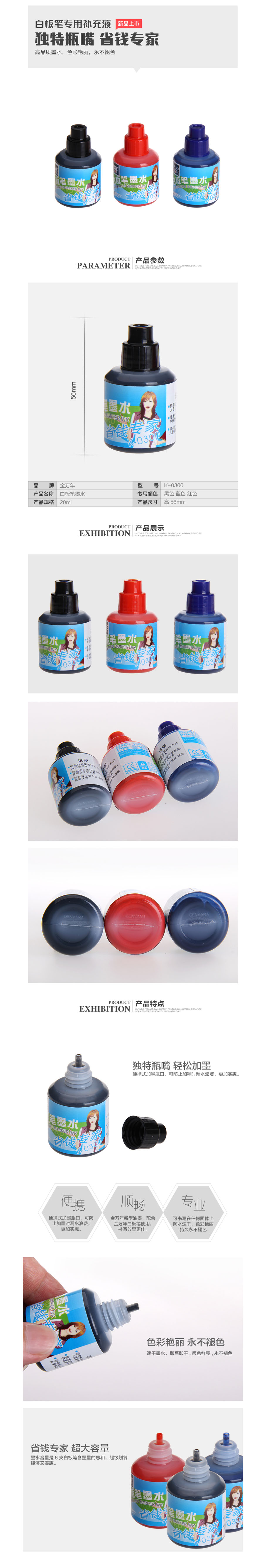 品名:金万年(Genvana) 白板笔专用墨水 K-0300 20ml 蓝色 单支装