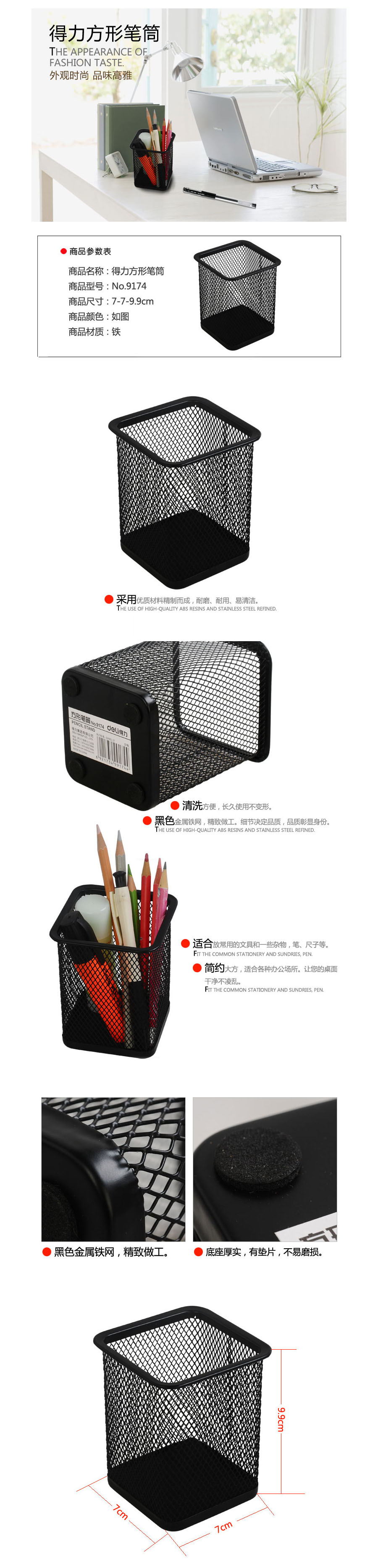 品名:得力deli 方形笔筒 9174 80*80*99MM