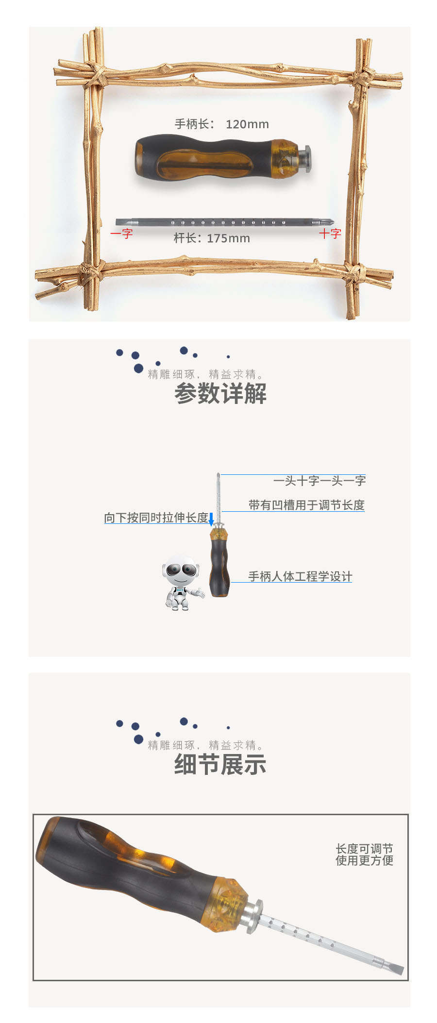 品名:螺丝刀 大号 可伸缩起子 十字一字两用