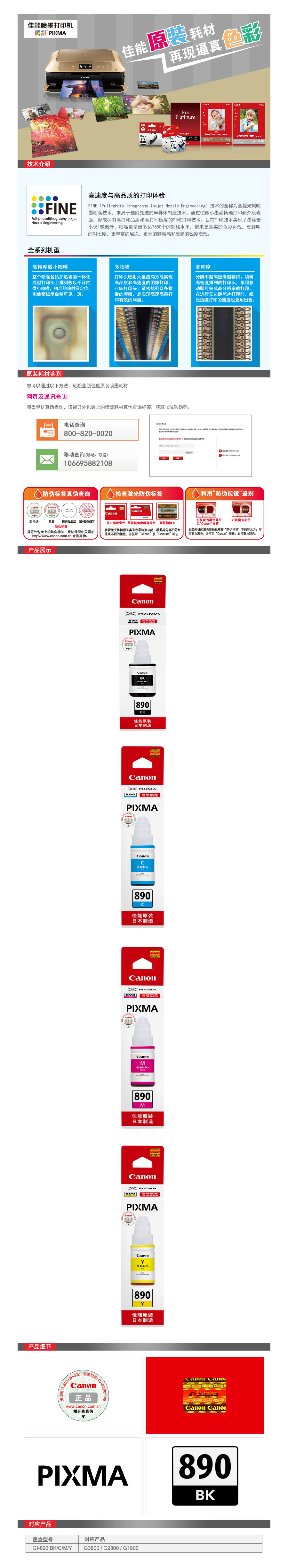品名:佳能(Canon) 墨水 GI-890 BK (适用佳能加墨式墨仓打印机G1800 G2800 G3800...