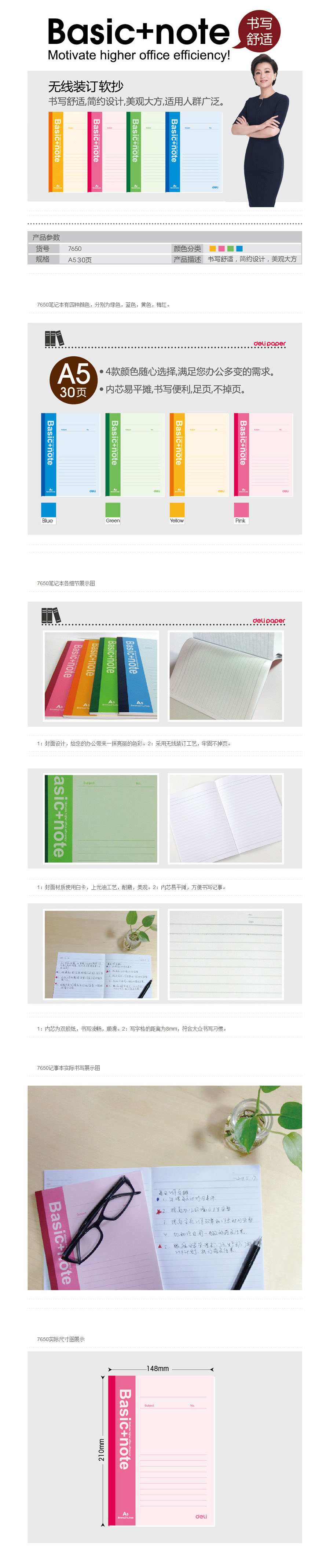 品名:得力(deli) 软抄本 7650 A5 30页 12本装