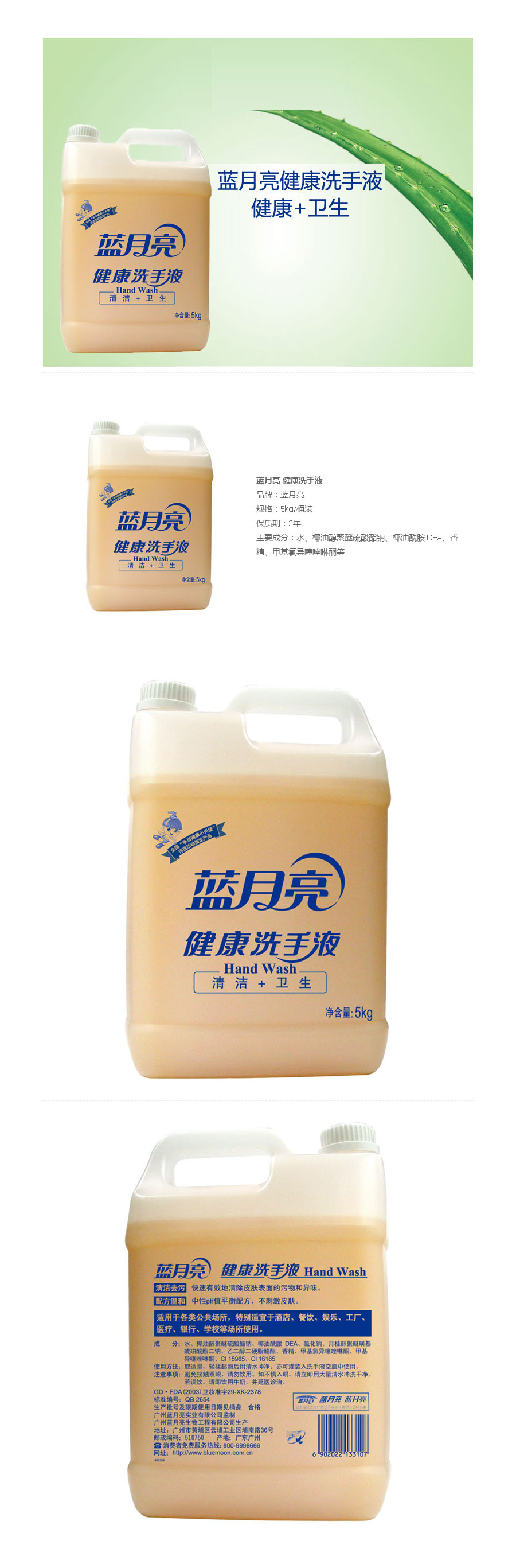 品名:蓝月亮 健康洗手液 5kg/桶