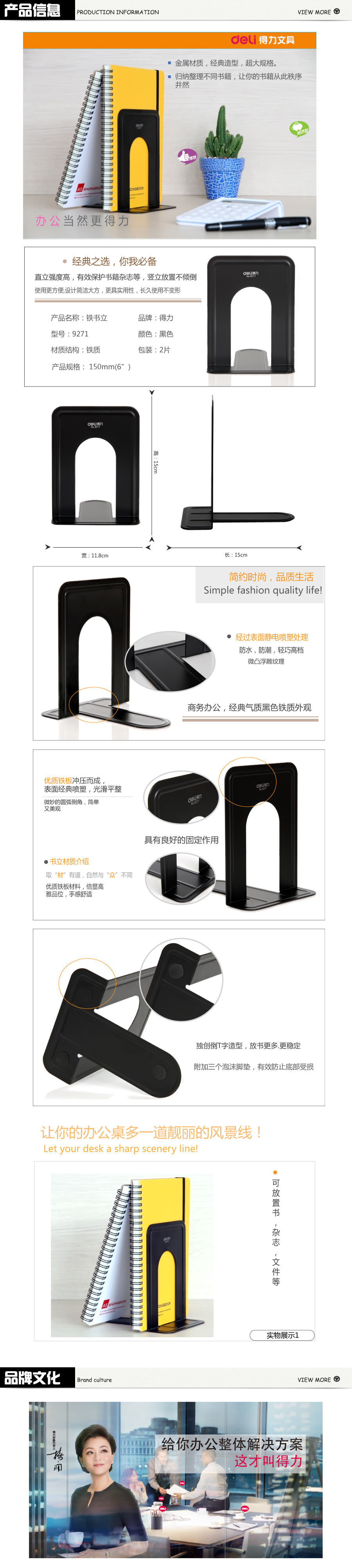 品名:得力(deli) 铁书立 9271 金属 150*150*118mm 6寸