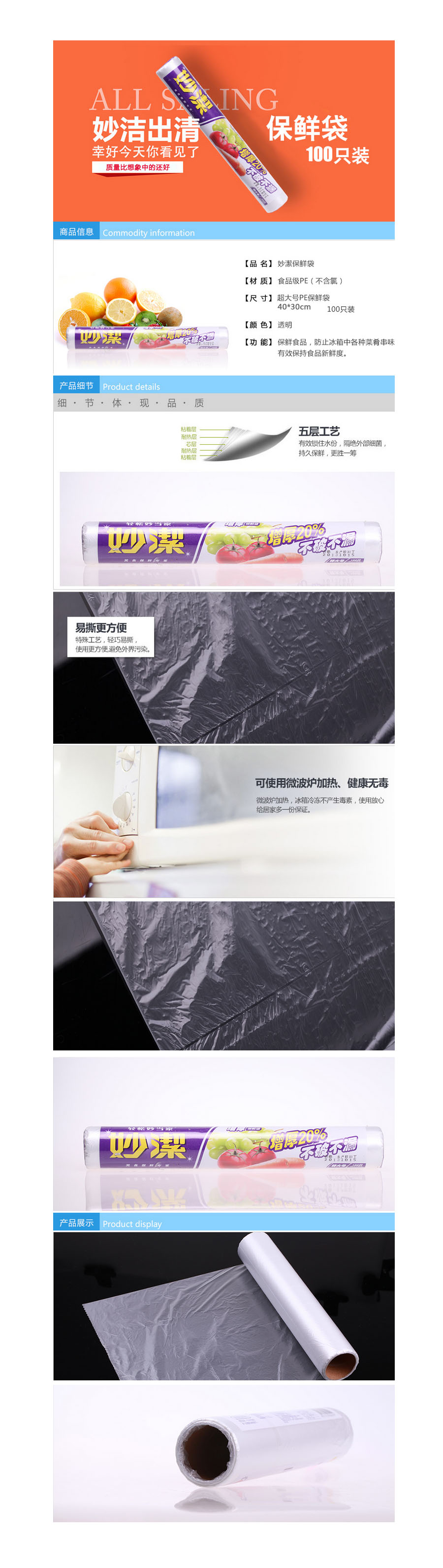 品名:妙洁 保鲜袋 0069 点断式 特大号