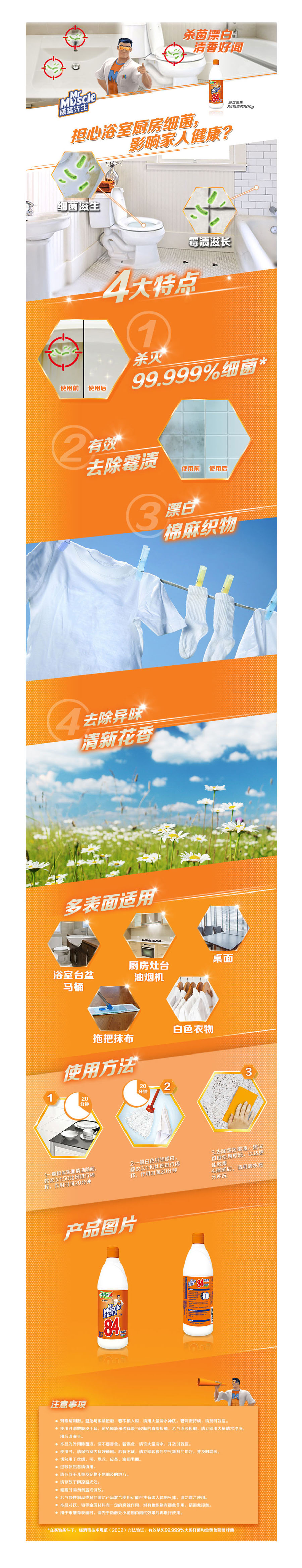品名:威猛先生 84消毒液 500g 清新花香 除菌液 漂白水