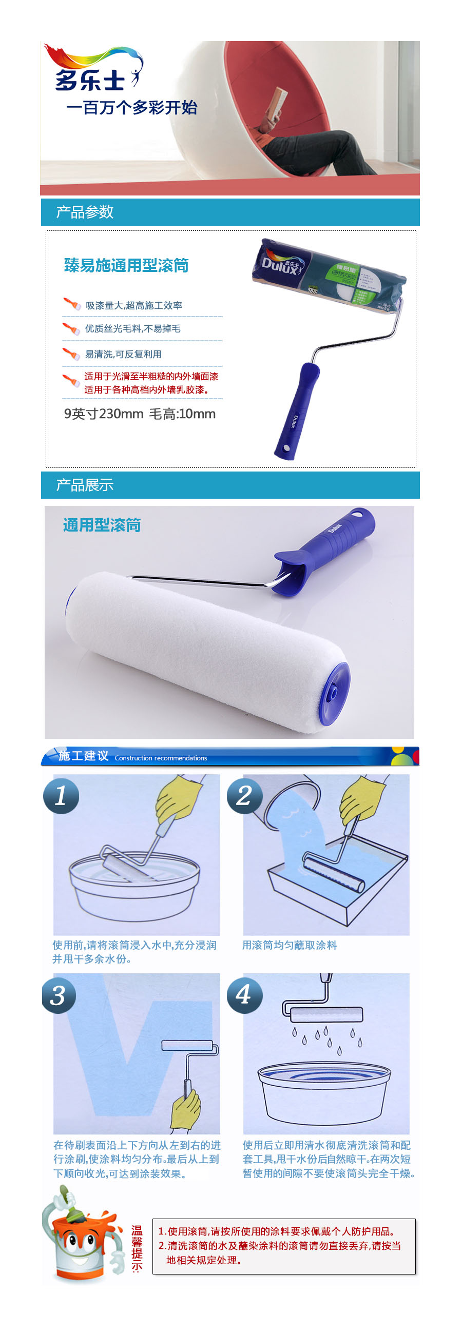 品名:多乐士(dulux) 滚刷 DYTR055 通用型9寸 丝光毛料 230mm 毛高12mm