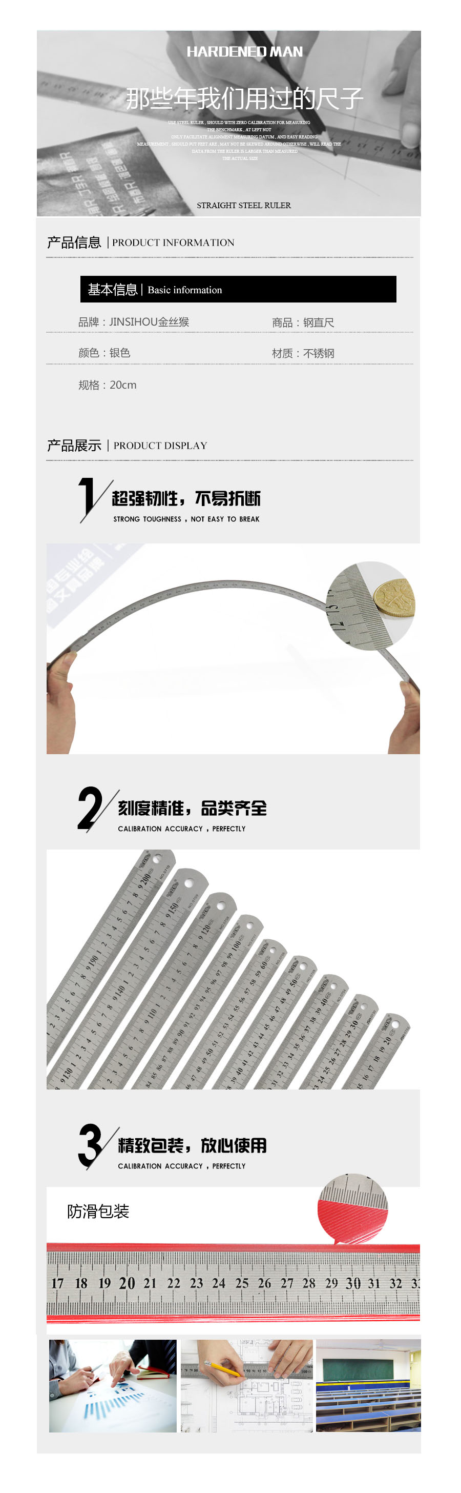 品名:金丝猴 直尺 0720 钢尺 长20cm 厚0.7mm