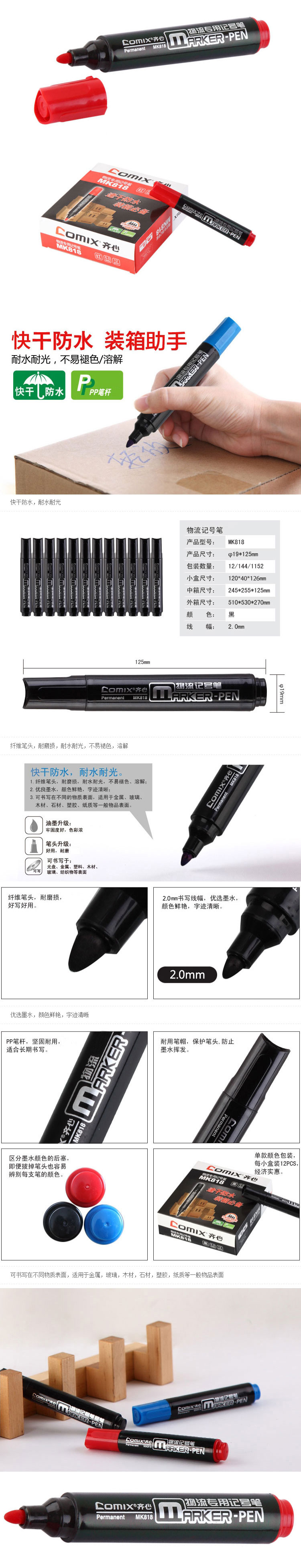 品名:齐心(Comix) 记号笔 MK818 粗头 油性 红色