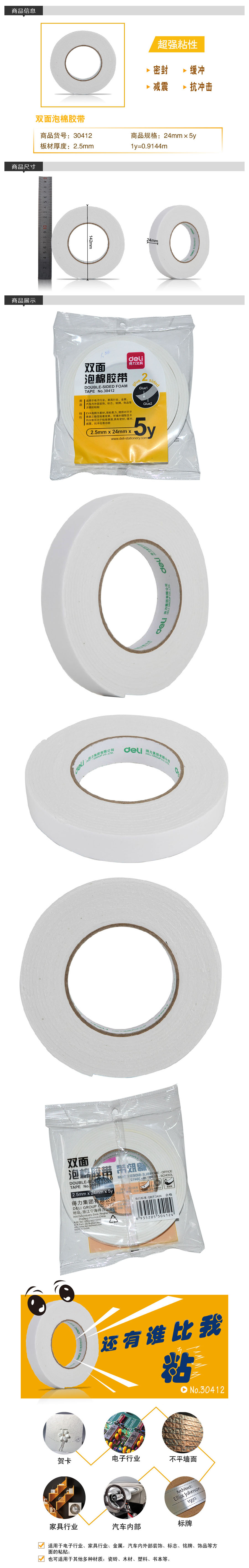 品名:得力(deli) 双面泡棉胶带 30412 2.5mm×24mm×5y