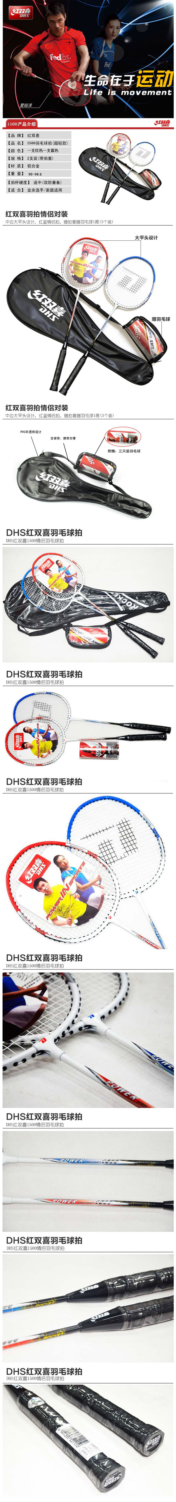 品名:红双喜 羽毛球拍 铝合金拍 1500 拍柄粗细: G2 2支装送一桶(3只)球